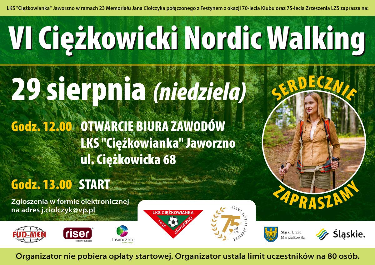 KS"Ciężkowianka" Jaworzno w ramach 23 Memoriału Jana Ciołczyka połączonego z Festynem z okazji 70 lecia Klubu oraz 75 lecia Zrzeszenia LZS zaprasza na VI Ciężkowicki Nordic Walking.