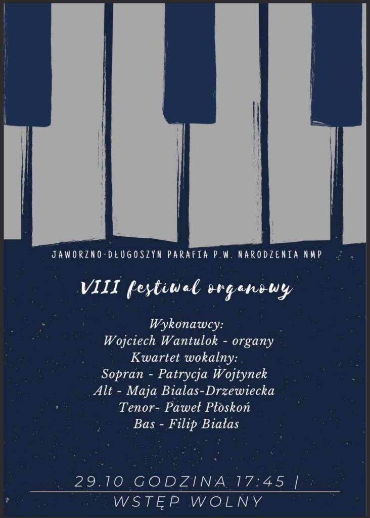 Parafia pw. Narodzenia Najświętszej Maryi Panny w Jaworznie Długoszynie zaprasza na VIII Jesienne Koncerty Organowe. Koncert tegorocznej edycji odbędzie się w sobotę 29 października o godz. 17.45. Wstęp na koncert wolny.