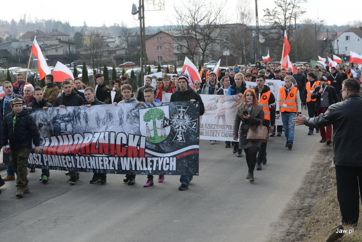 Po Mszy uformowano pochód. Za pocztami sztandarowymi kroczyli jaworzniccy harcerze, jaworznickie Stowarzyszenie Młodzi Patrioci, grupy militarne. Niesiono fotografie Żołnierzy Wyklętych: Zygmunta Szendzielarza „Łupaszki”, Łukasza Cieplińskiego, gen. Emila Fieldorfa „Nila”, rtm Pileckiego, Danuty Siedziakówny „Inki” i Kazimierza Curyło.