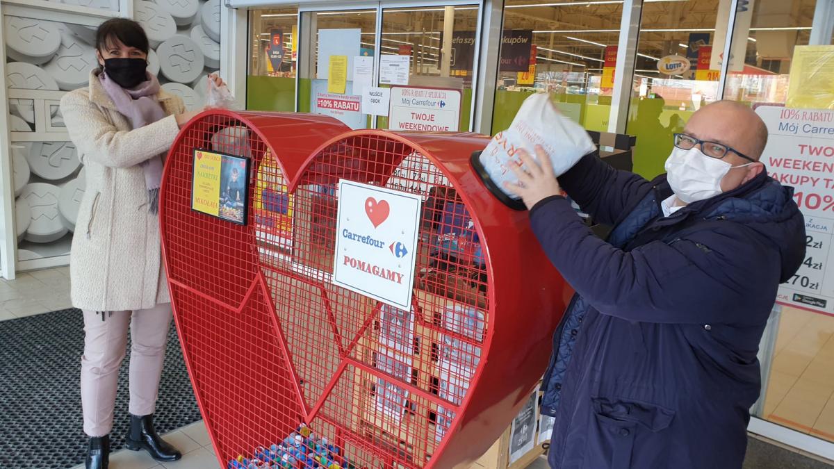 Ponieważ miasto nie było zainteresowane zakupem tych pojemników, pani Barbara Ziętek poszła w inną stronę, poszukała sponsora, czyli Firmę Carrefour i tym samym doprowadziła do tego, że to cudowne serce na nakrętki stanęło w markecie Carrefour i może nieść pomoc innym. Wielkie brawa, że dzięki tym ludziom udało się zrealizować cały plan i że powstało kolejne ogromne serce, które mieszkańcy Jaworzna mogą stale zapełniać.