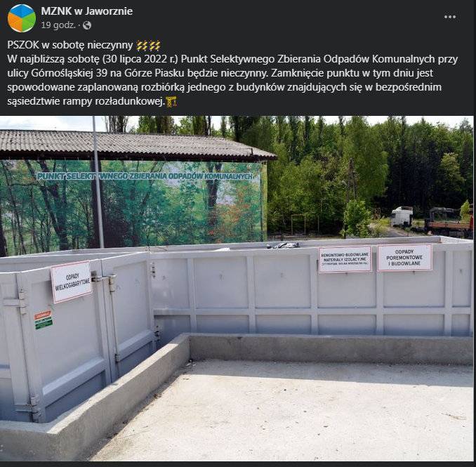 W Punkcie Selektywnego Zbierania Odpadów Komunalnych mieszącym się przy ulicy Górnośląskiej 39 będzie rozbierany jeden z budynków, dlatego w najbliższy weekend nie w każdy dzień będziemy mogli oddać odpady.