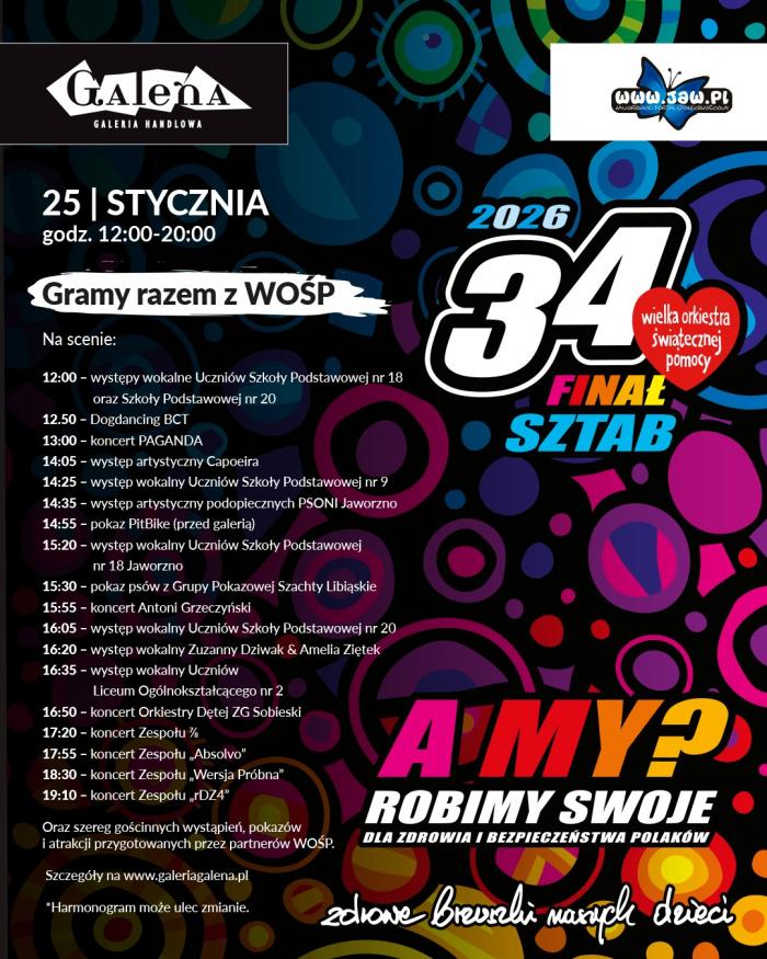 Przed nami 34. Finał Wielkiej Orkiestry Świątecznej Pomocy, a lokalny sztab kończy właśnie ostatnie przygotowania, by w Galerii Galena naprawdę działo się bardzo dużo. W najbliższą niedzielę Jaworzno znów zagra razem – głośno, kolorowo i z ogromnym sercem.