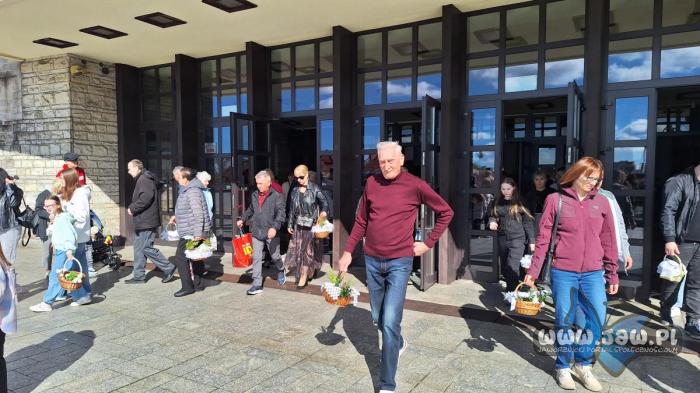Wielka Sobota to dzień święcenia pokarmów, które mają zostać podane na uroczyste wielkanocne śniadanie. Podówczas obowiązkowo święcono to wszystko, co miało zostać podane na wielkanocnym stole. W starym kalendarzu tak oto opisywano święcone na dworze wojewody Sapiehy w Dereczynie: na samym środku był baranek z chorągiewką, calutki z pistacjami, obok ustawiono 4 przeogromne dziki, co symbolizowało cztery pory roku, każdy dzik był naszpikowany szynkami i kiełbasami. 12 jeleni oznaczało 12 miesięcy, miały te jelenie złote rogi, nadziano je zającami, cietrzewiami i dropami. Naokoło umieszczono ciasta: placki, mazurki, żmudzkie pierogi, wszystkie z bakaliami, było ich tyle ile tygodni w roku – 52. Za nimi położono 365 babek, tyle ile dni w roku. „Każda była adorowana inskrypcjami, floresami, aż niejeden tylko czytał” – piszą w kalendarzu.