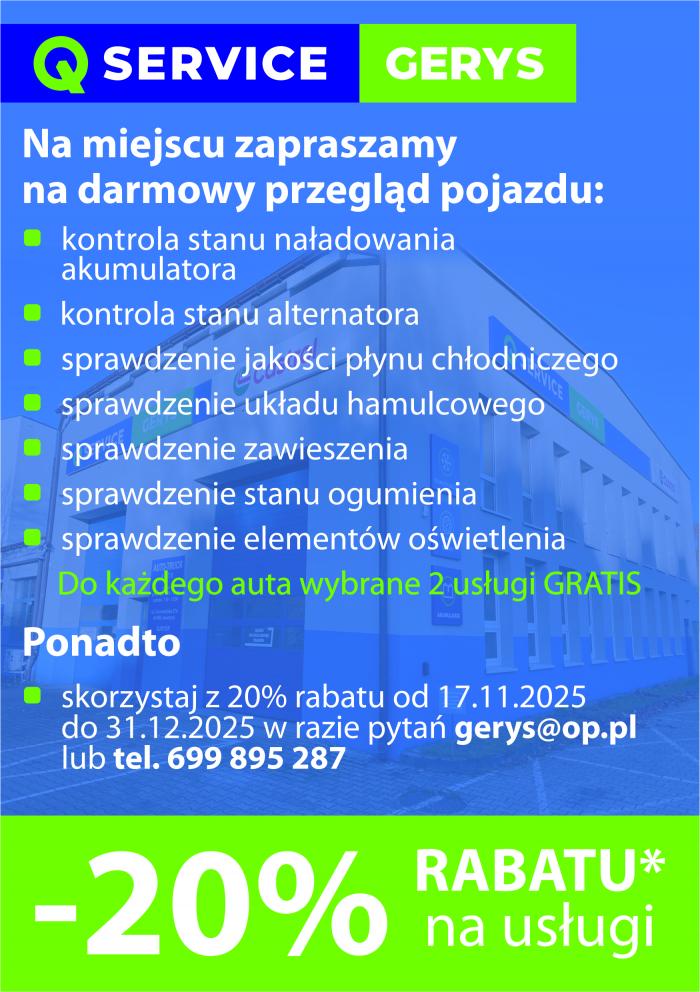 Uroczyste otwarcie nowej filii Q Service Gerys odbędzie się już 15 listopada od godziny 8:00. Przygotowano darmowe usługi, strefę gastronomiczną oraz stoiska partnerów warsztatu, między innymi Castrol oraz Milwaukee.