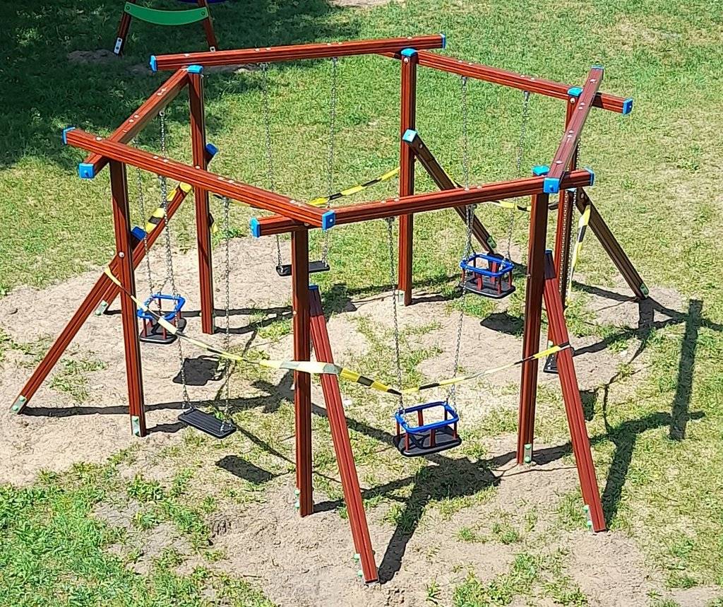A to za sprawą "ciekawego" rozwiązania projektanta, który zaprojektował wspomnianą huśtawkę. Jest ona bowiem zaprojektowana w kształcie figury geometrycznej przypominającej graniastosłup sześciokątny. Zamontowanych jest do niej 6 huśtawek, które po wprawieniu w ruch zbliżają się do siebie na bardzo bliską odległość. Gdyby huśtały się na nich dzieci, to z pewnością wpadałyby na siebie, robiąc sobie przy okazji krzywdę.