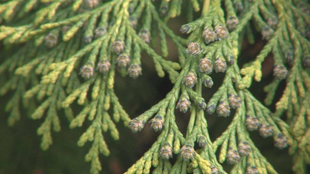 Piotr Grzegorzek, na przykładzie Cyprysika Lawsona objaśnia zależność między stałymi, dodatnimi temperaturami a początkiem sezonu ogrodniczego.