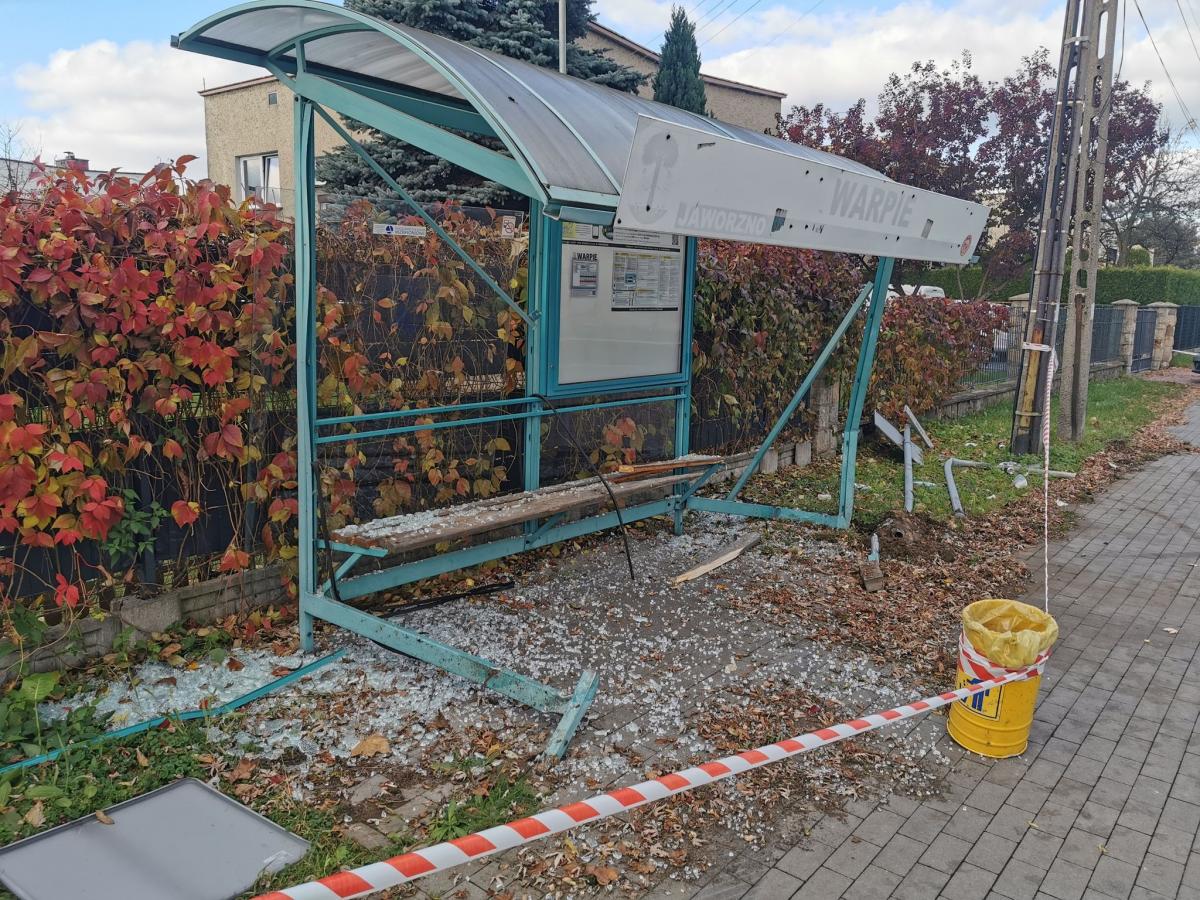 Kierowca na łuku drogi pojechał prosto i zniszczył całkowicie przystanek autobusowy "Warpie". Na szczęście o tej godzinie nikogo na nim nie było.