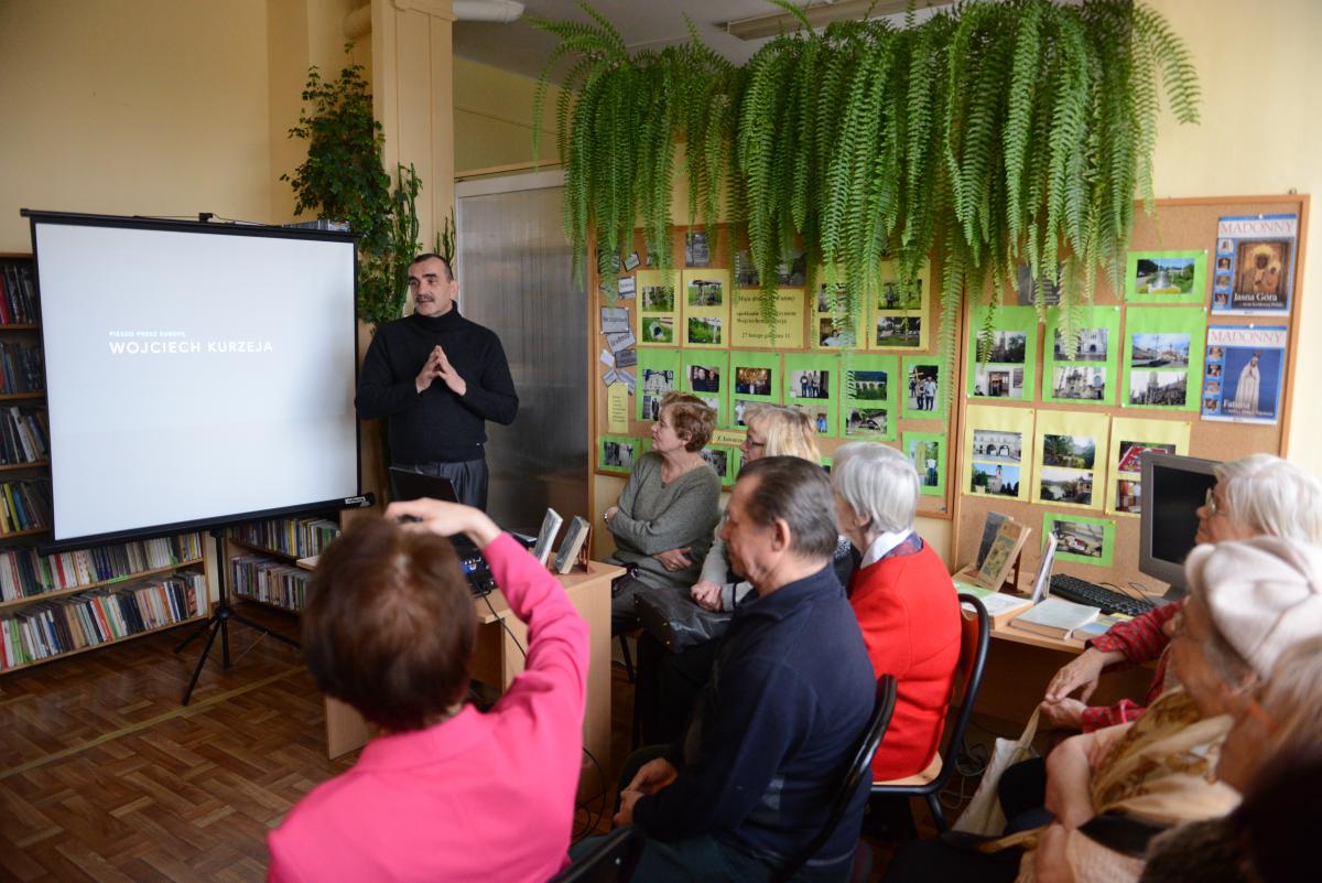 Wojciech Kurzeja, jaworznicki pielgrzym, który od trzech lat pieszo przebywa drogę z Jaworzna do europejskich Sanktuariów Maryjnych, opowiedział dzisiaj w fili biblioteki miejskiej na Podwalu o swoich dotychczasowych podróżach oraz pielgrzymce, którą planuje w tym roku. Czemu jest pielgrzymem? Wojciech jest alkoholikiem, który nie pije od ponad 20 lat. Pielgrzymki to jego sposób na wyrażenie podziękowań Bogu, że udało mu się wyjść z nałogu.