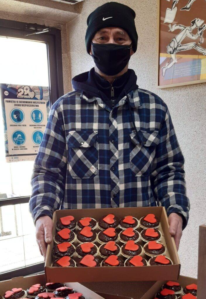 Z Byczyny z Cukierni Stefanka przyjechały muffinki, każda z czerwonym serduszkiem. To już tradycja, by każda muffinka przypominała WOŚP. Muffinki przywiózł Jacek Smalcerz.