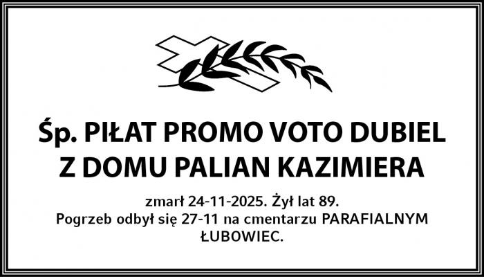 Pogrzeb odbył się 29-11 na cmentarzu Parafialnym Łubowiec.
