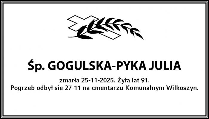 Pogrzeb odbył się 01-12 na cmentarzu Komunalnym Wilkoszyn.