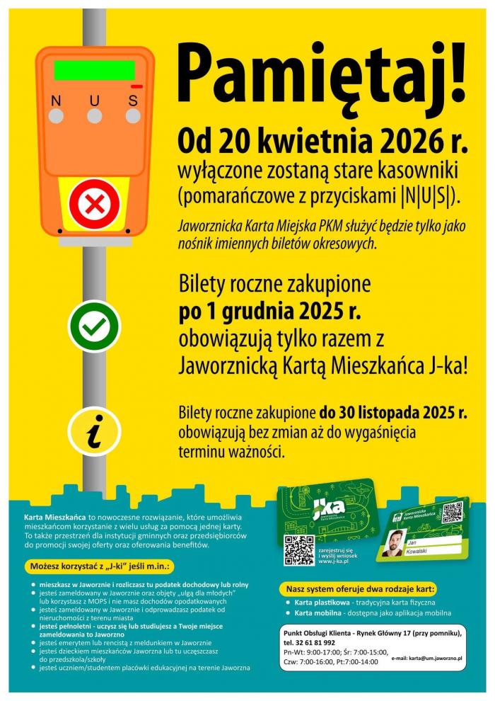 Z kolei bilety zakupione po 1 grudnia 2025 ważne są tylko z Jaworznicką Kartą Mieszkańca J-ka.