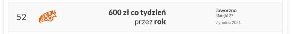 Szczęśliwiec z Jaworzna zgarnie 600 zł co tydzień przez cały rok. W sumie będzie to kwota 31 200,00 zł.