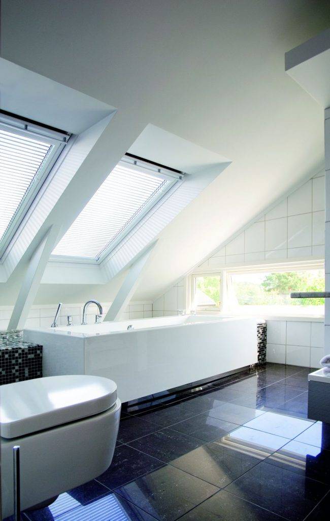 Okna dachowe w łazience i kuchni warto wyposażyć w dodatkowe akcesoria, gwarantujące prywatność i kontrolę światła, takie jak żaluzje VELUX PAL. Są odporne na wilgoć, łatwe do utrzymania w czystości i bardzo wygodne w użytkowaniu – ich pozycję reguluje się za pomocą suwaka. Brak wiszących sznurków sprawia, że wyglądają elegancko i estetycznie. Idealnie pasują do rozmiaru okna i można je zamontować samodzielnie dzięki systemowi Pick&Click ® .