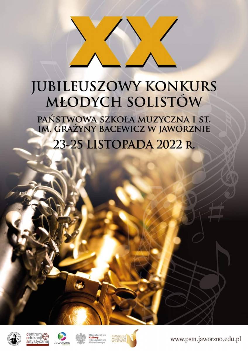 W dniach 23-25 listopada w Państwowej Szkole Muzycznej I stopnia im. Grażyny Bacewicz odbędzie się XX Ogólnopolski Konkurs Młodych Solistów pod patronatem Centrum Edukacji Artystycznej w Warszawie oraz Prezydenta Miasta Jaworzna. Ten prestiżowy konkurs od 2001 roku przyciąga do Jaworzna młodych muzyków z całej Polski, a w tym roku obchodzi jubileusz.