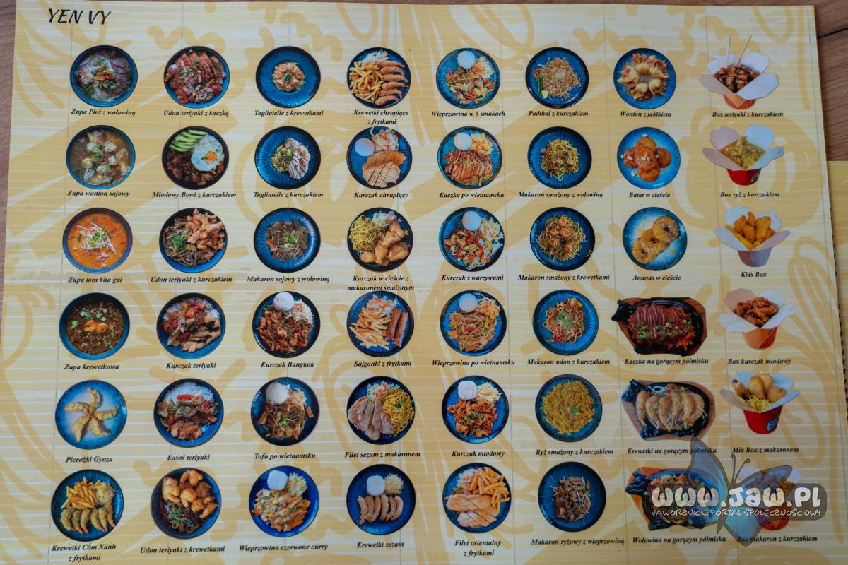 Lokal słynie z bardzo rozbudowanego menu, w którym główną rolę odgrywa autentyczna kuchnia wietnamska i orientalna. W ofercie znajduje się mnóstwo różnorodnych potraw, od klasycznych i aromatycznych dań z makaronem, po starannie skomponowane propozycje wegetariańskie i wegańskie. Dzięki tak szerokiemu wyborowi każdy miłośnik dobrej kuchni znajdzie tu coś idealnego dla siebie. Dla osób preferujących posiłki we własnych czterech kątach, YEN VY oferuje również wygodny dowóz zamówień na terenie całego Jaworzna.