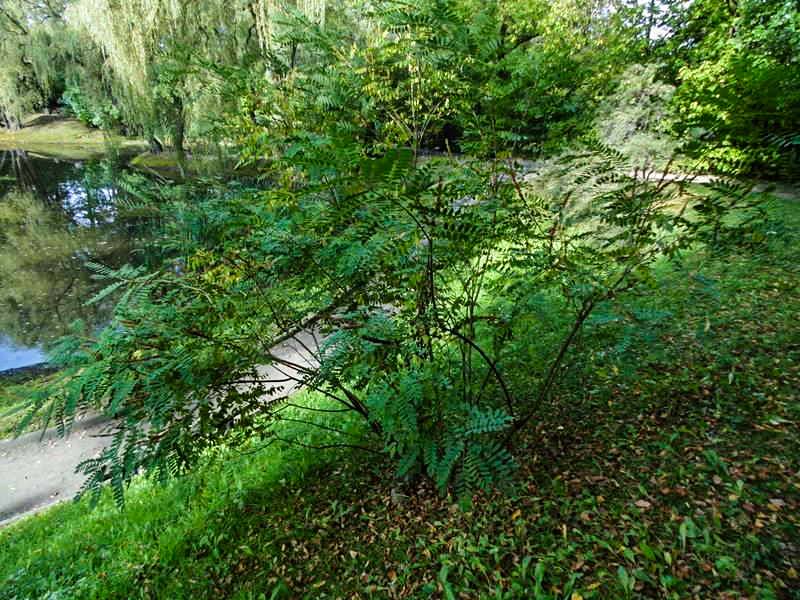 Blisko stawu rośnie też amorfa krzewiasta - Amorpha fruticosa.