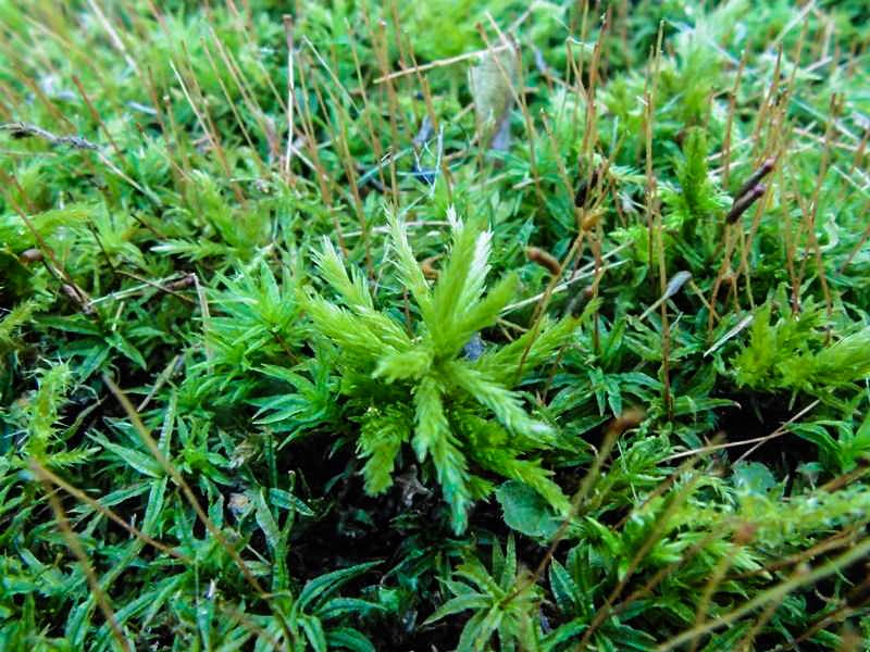 Podczas spaceru zwróciłem również uwagę na spore połacie zajęte przez mszaki. Oto drabik drzewkowaty - Climacium dendroides pomiędzy żurawcem falistym - Atrichum unduatum.