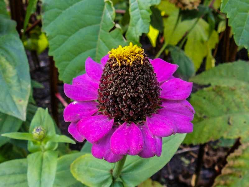 Tuż obok rośnie cynia wytworna - Zinia elegans.