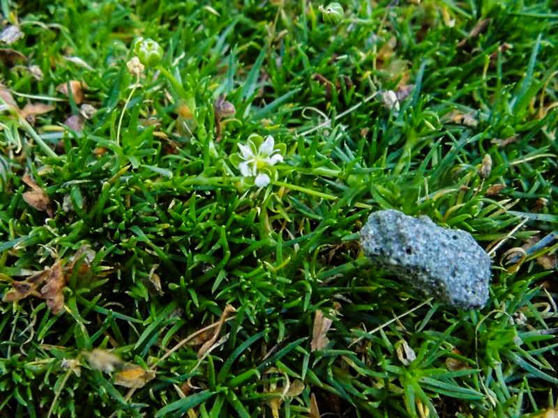 Po gruncie ścielił się karmnik rozesłany - Sagina procumbens.