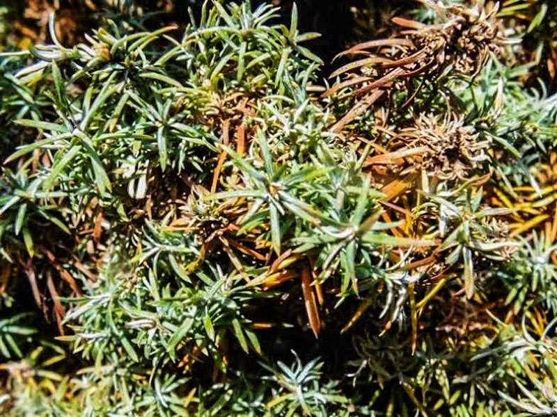 Teraz zbliżamy się do części inspirowanej kulturą Dalekiego Wschodu. Po drodze mamy jakiś jałowiec - Juniperus. Mogą to też być młodociane odmiany cyprysika - Chamaecyparis lub żywotnika - Thuja. Jest to kolejny powód dla którego będę musiał tutaj zajrzeć ponownie.