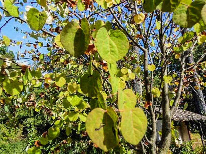 Prawie zaraz na wejściu mamy grujecznik japoński - Cercidiphyllum japonicum