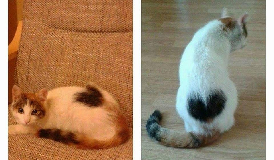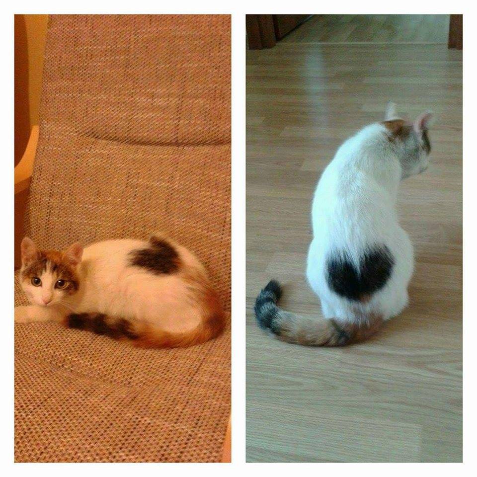 Ma charakterystyczną czarną plamkę w kształcie serca. Miała na sobie tęczową obroże. Kontakt: 888 762 343.