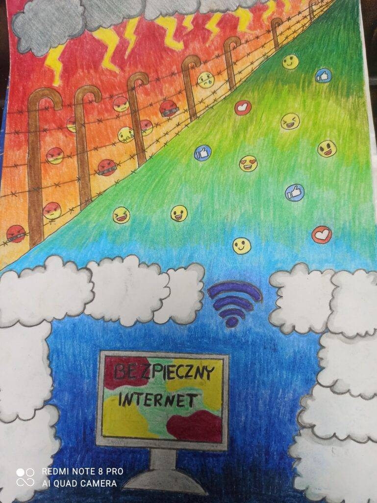 W dniach od 8 do 19 lutego 2021 roku uczniowie szkoły uczestniczyli w różnego rodzaju zajęciach edukacyjnych, lekcjach wychowawczych, lekcjach informatyki, a także lekcjach plastyki i techniki, na których rozmawiano o bezpieczeństwie w Internecie.
