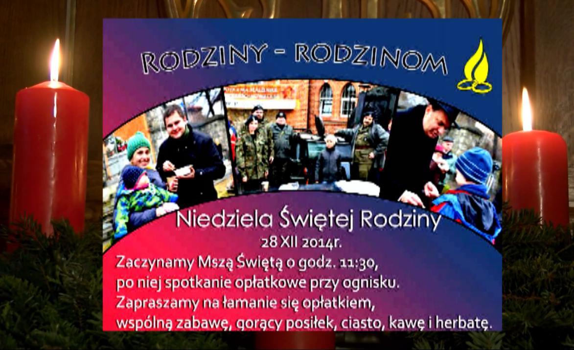 Zapraszamy na Uroczystość Świętej Rodziny w Parafii Św. Elżbiety Węgierskiej w Szczakowej. Msza Św. odbędzie się w dniu 28.12.2014 o godz 11.30. Mszę odprawi ks. Biskup Grzegorz Kaszak.