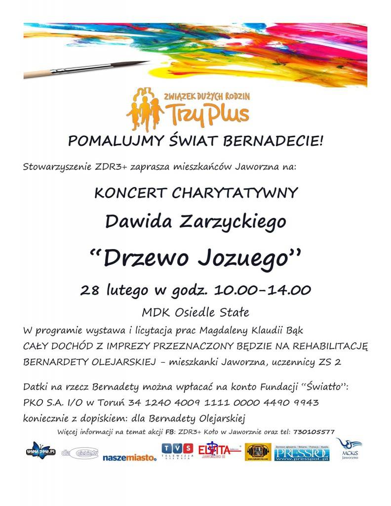 Natomiast w sobotę o godzinie 10:00 w Młodzieżowym Domu Kultury na Osiedlu Stałym odbędzie się koncert charytatywny Dawida Zarzyckiego pt. „Drzewo Jozuego”. W programie znalazła się również licytacja prac Magdaleny Klaudii Bąk.
