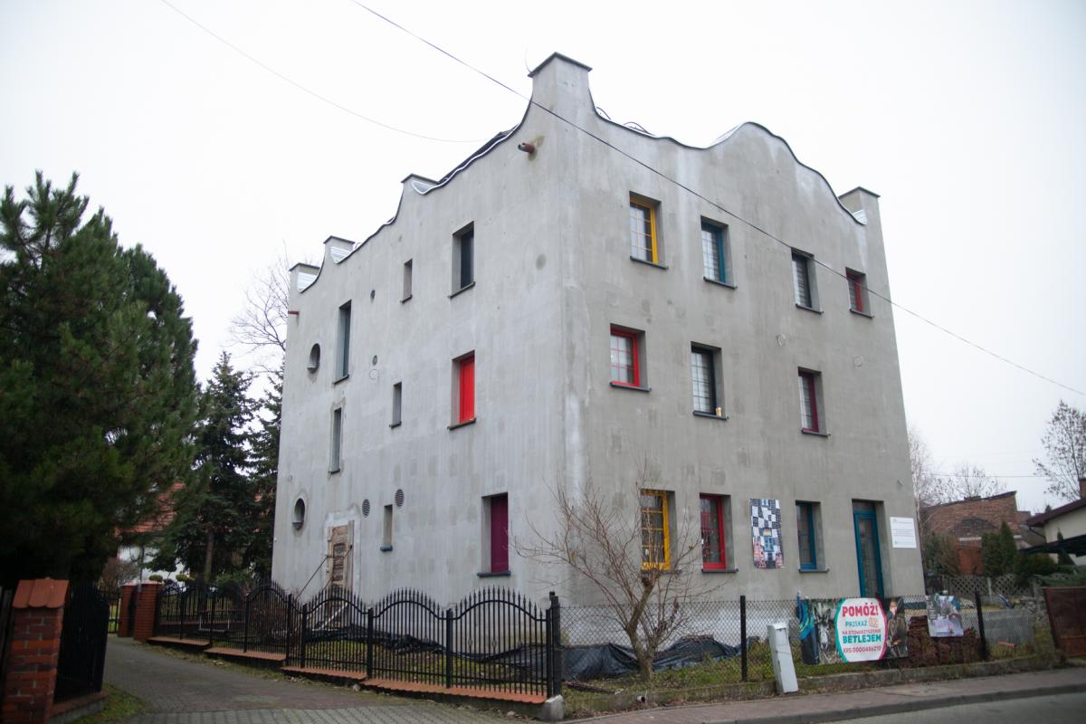 Wspólnota potrzebuje także finansowego wsparcia, aby ukończyć to co rozpoczęła z myślą o ubogich i tych, którzy chcieliby skorzystaćz rekolekcji, warsztatów. Ze skweru widać drugi budynek, który wykańczają. We wnętrzach też korzystali z powystawowych płytek lub resztek, które komuś zbywały. Dom „NieProsta Historia” też nawiązuje do prac austriackiego artysty.