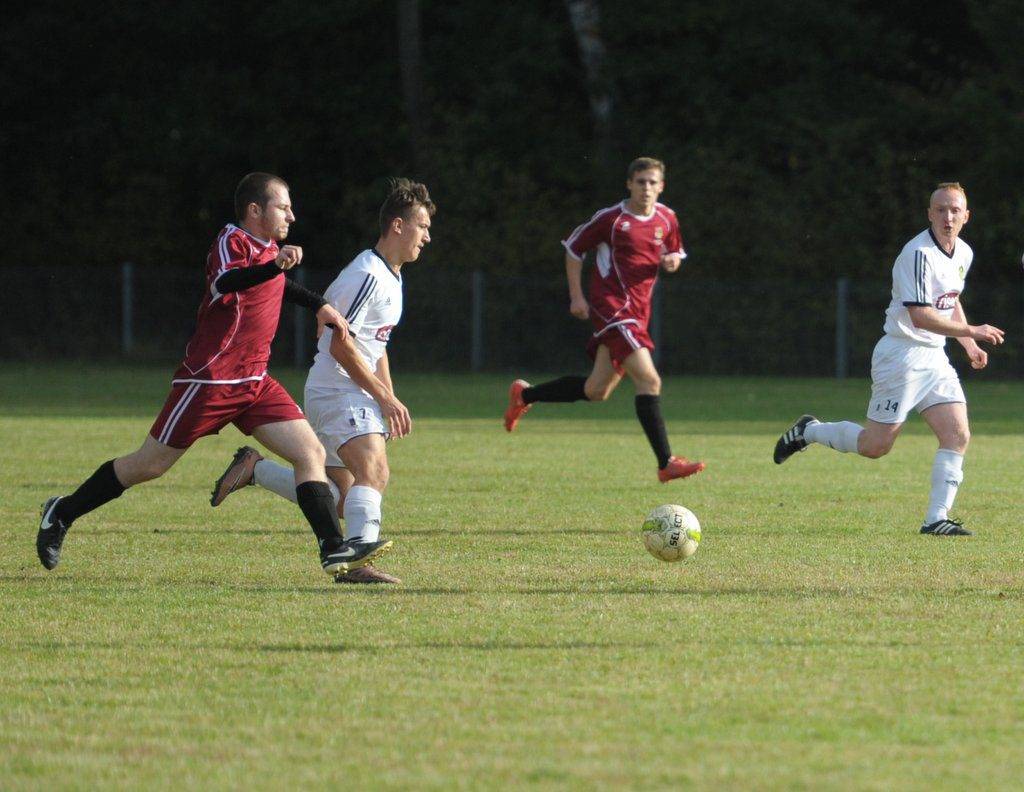Pierwsza połowa spotkania nie zapowiadała aż takiej kanonady. Wynik spotkania otworzył w 17. minucie Tomasz Jaromin. Osiem minut poźniej na 2:0 podwyższył Marek Zieliński. Tuż przed przerwą goście wykorzystali podyktowany rzut karny i było 2:1.