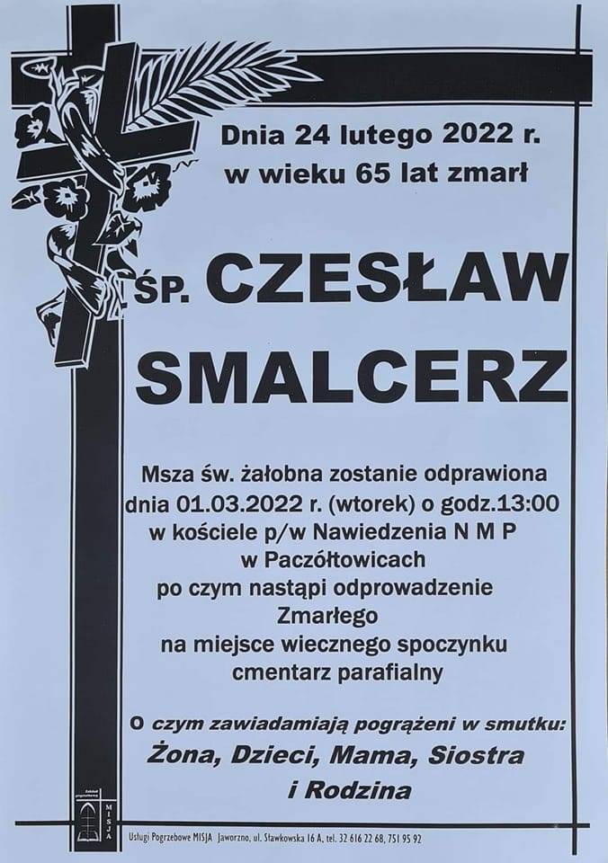 Pożegnanie Czesława Smalcerza odbędzie się 1 marca o godz. 13 w kościele pod wezwaniem NMP w Paczółtowicach.