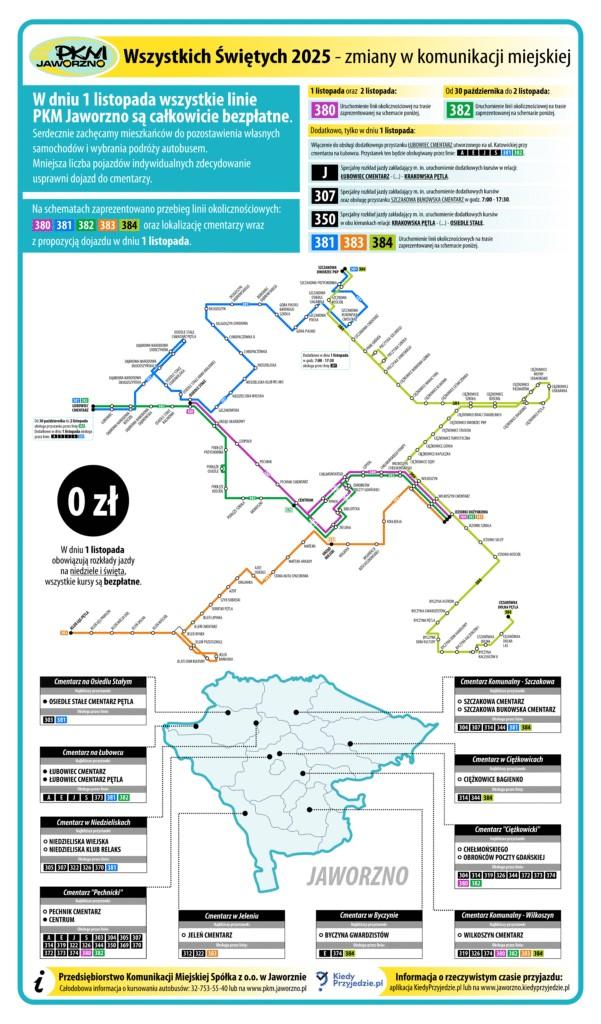 Co ważne, w tym dniu przejazd miejskimi autobusami będzie dla wszystkich pasażerów bezpłatny. PKM Jaworzno zachęca mieszkańców do korzystania z transportu publicznego, aby ograniczyć ruch samochodowy w rejonach cmentarzy.