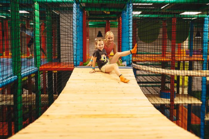 Infrastruktura sali łączy klasykę z technologią. Poza wielopoziomowymi torami przeszkód, mostami wiszącymi i zjeżdżalniami pontonowymi, dzieci znajdą tu strefy dedykowane konkretnym pasjom: