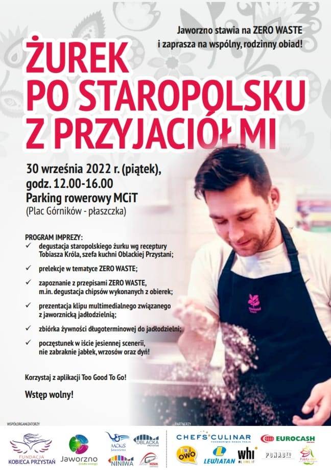 ŻUREK PO STAROPOLSKU Z PRZYJACIÓŁMI to wspólny obiad, który odbędzie się w najbliższy piątek 30 września od 12:00 do 16:00 pod jaworznicką Płaszczką i przygotuje go kucharz Tobiasz Król, który jest szefem kuchni w restauracji Oblacka Przystań, a dodatkowy jest znajomym samego Modesta Amaro.