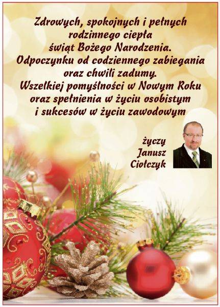 Błogosławionych, spokojnych i radosnych Świąt Bożego Narodzenia życzy Janusz Papuga .