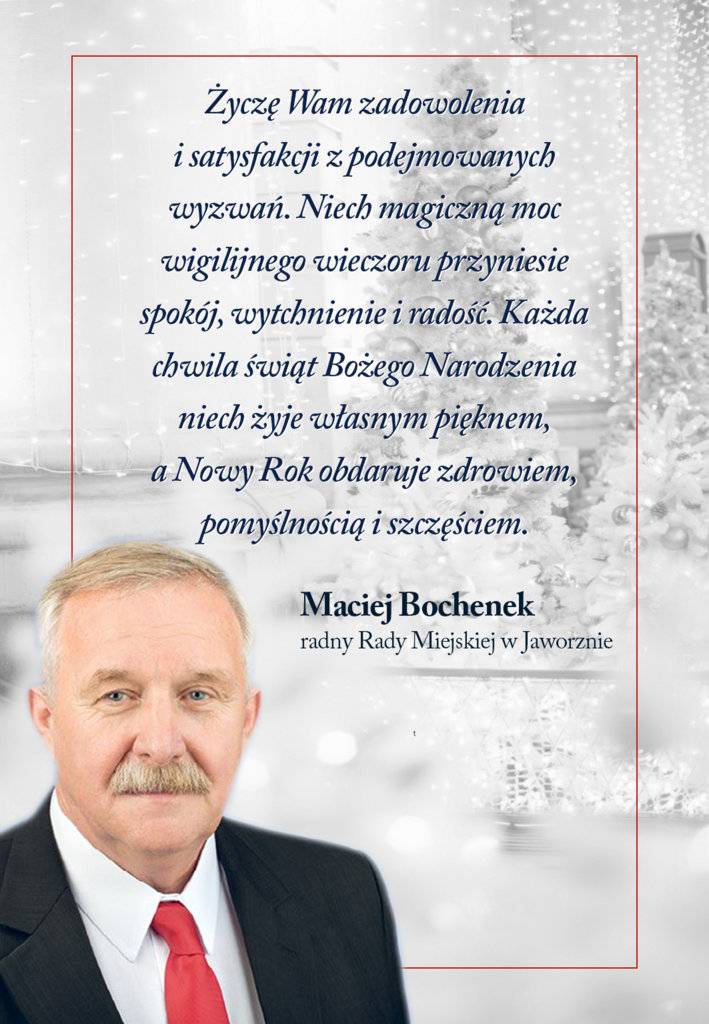 Życzenia dla mieszkańców od radnego Macieja Bochenka
