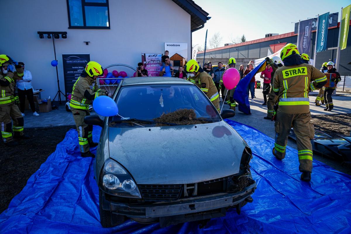 Akcja ratunkowa Straży Pożarniej. Zobacz jak wygląda krok po kroku wyciągnięcie poszkodowanego, który utknął w samochodzie