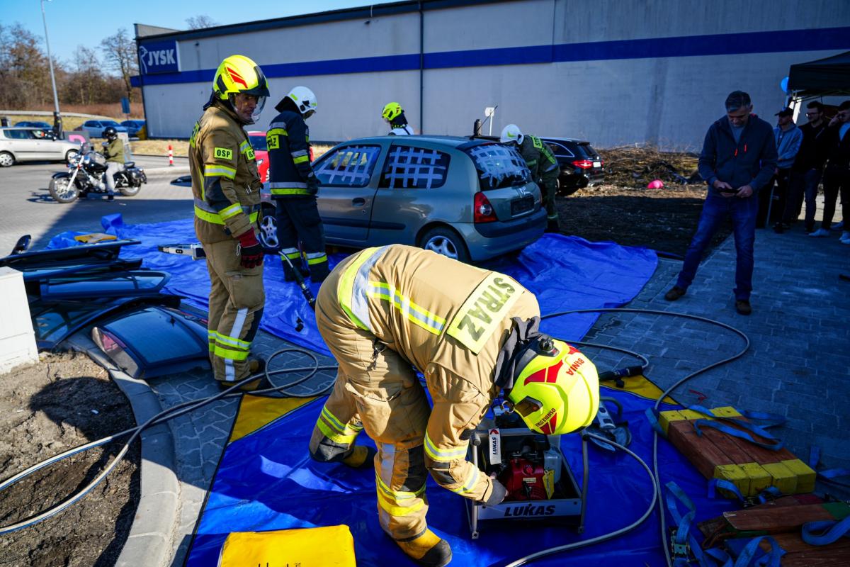 Akcja ratunkowa Straży Pożarniej. Zobacz jak wygląda krok po kroku wyciągnięcie poszkodowanego, który utknął w samochodzie