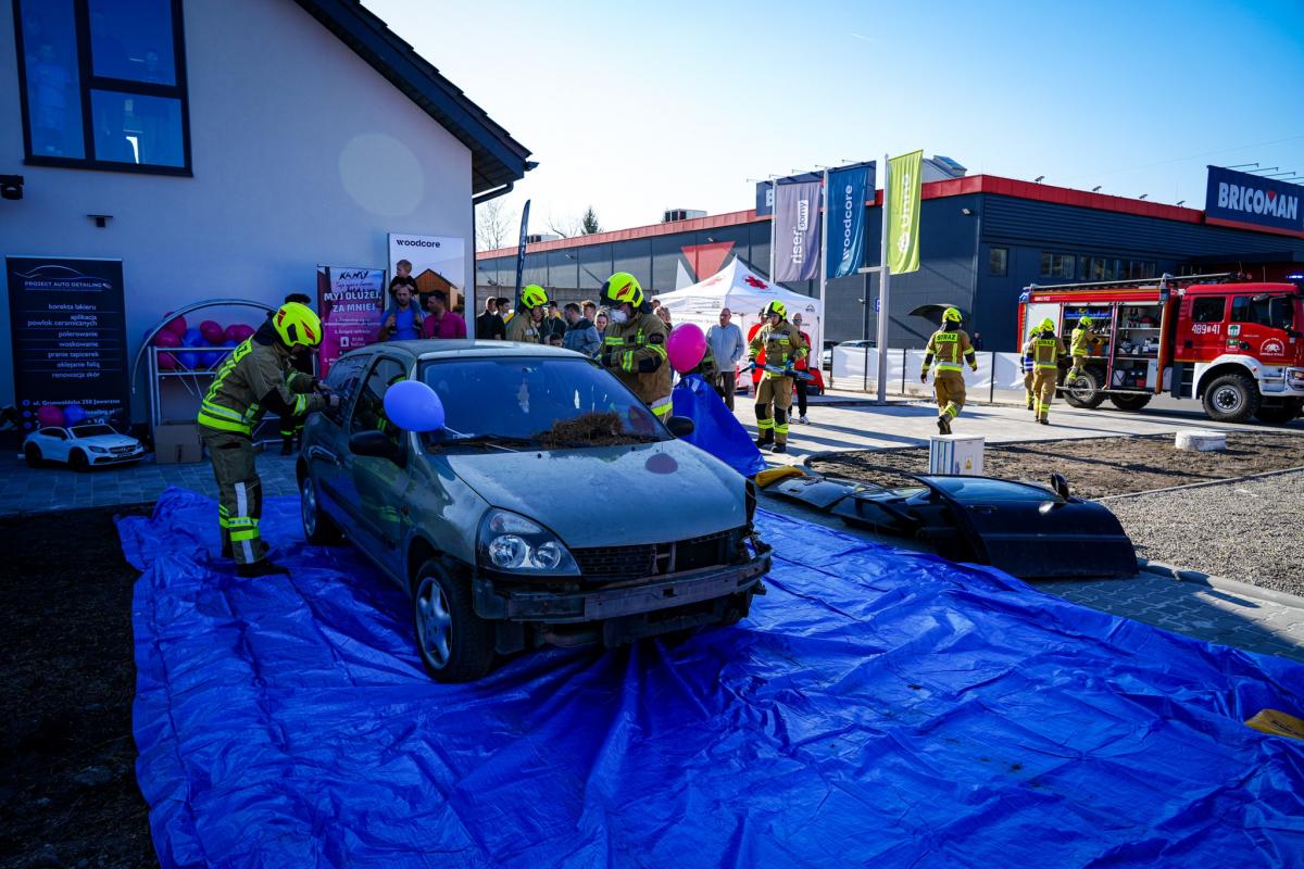 Akcja ratunkowa Straży Pożarniej. Zobacz jak wygląda krok po kroku wyciągnięcie poszkodowanego, który utknął w samochodzie