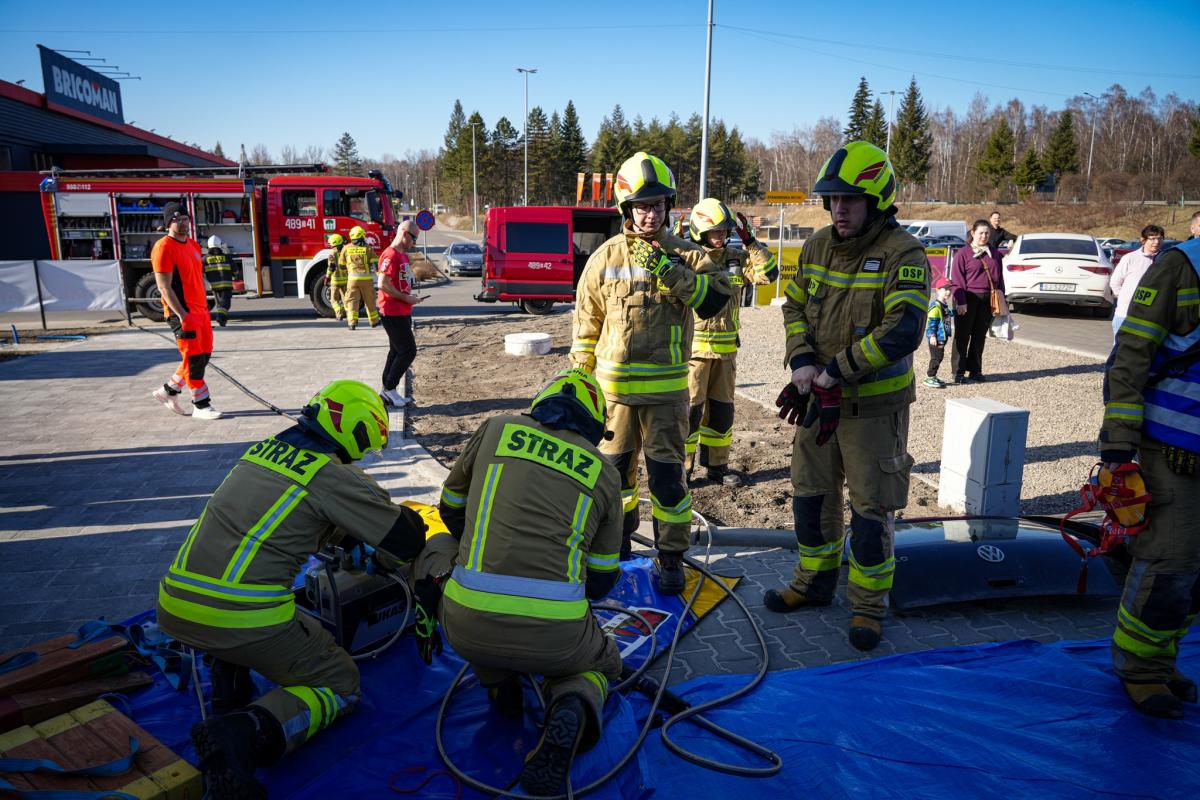 Akcja ratunkowa Straży Pożarniej. Zobacz jak wygląda krok po kroku wyciągnięcie poszkodowanego, który utknął w samochodzie