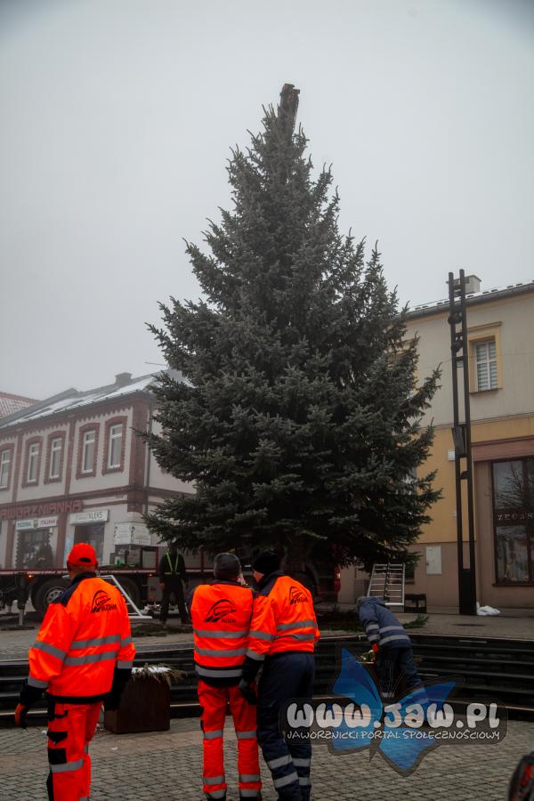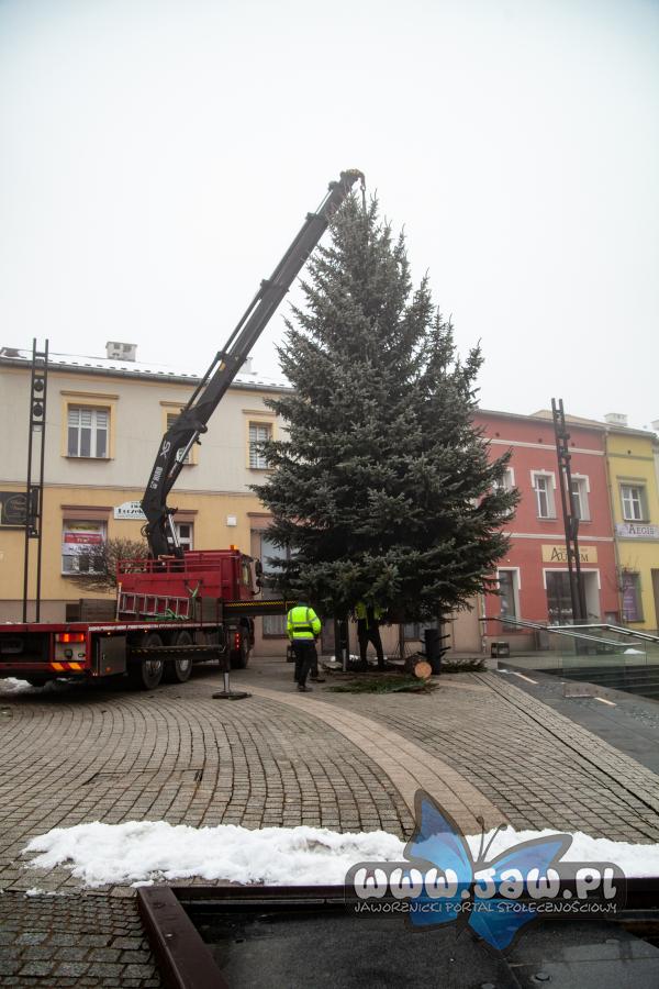 Tegoroczna bożonarodzeniowa choinka dotarła na jaworznicki rynek 1 grudnia 2025 r.