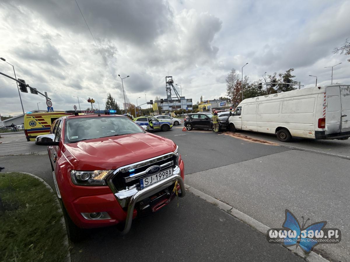 Cztery auta zderzyły się na skrzyżowaniu ulic Grunwaldzkiej i Szczakowskiej
