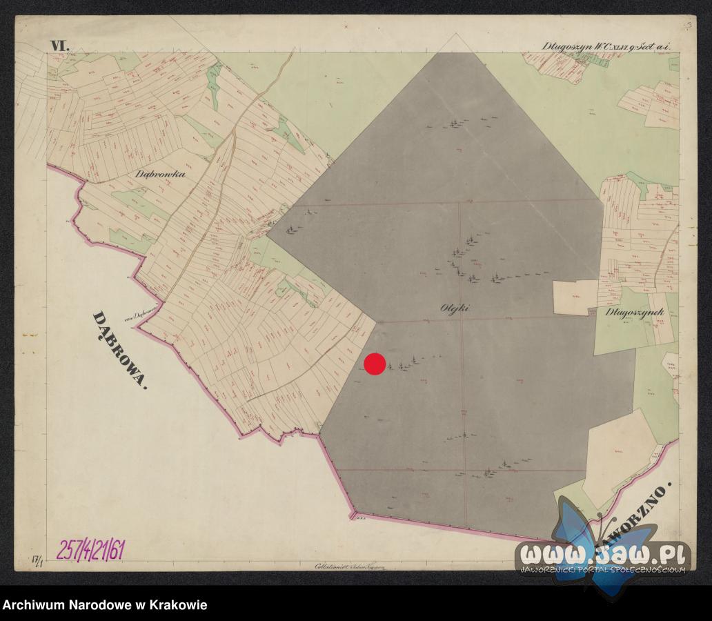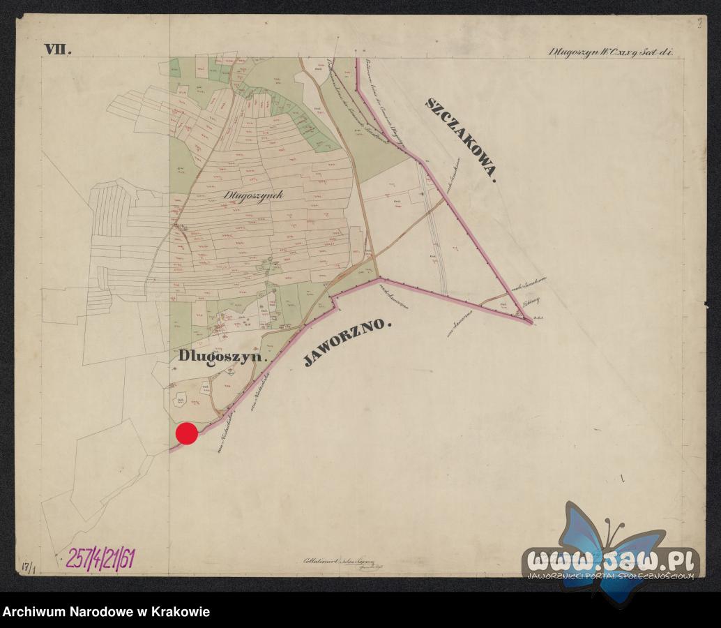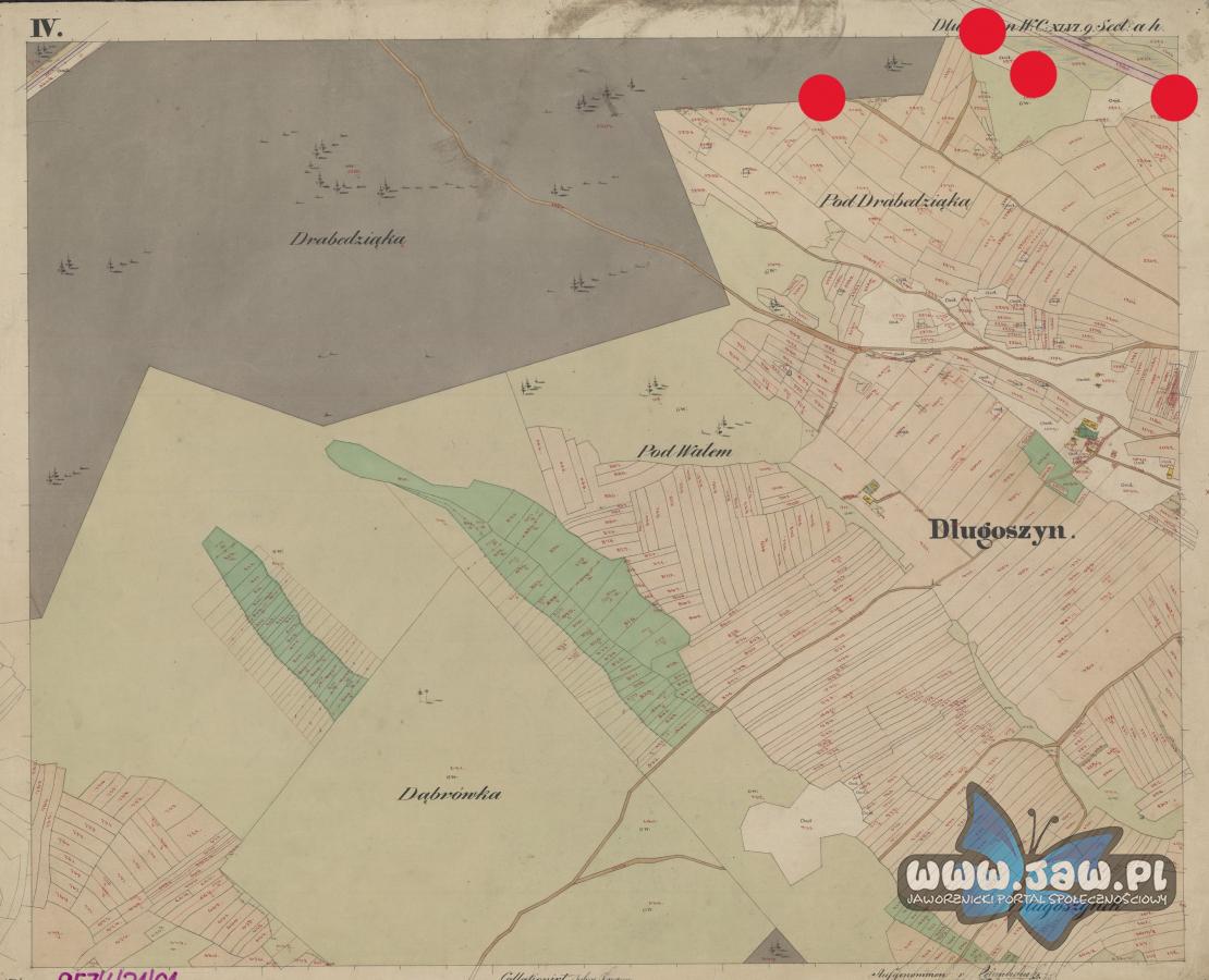 Kopce graniczne we wsi Długoszyn na mapie Katastru Galicyjskiego-połowa XIX wieku