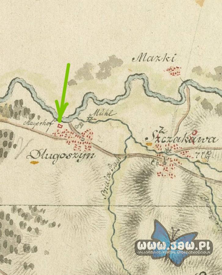 Zieloną strzałką zaznaczony długoszyński dwór (źródło- Zagłębie Dąbrowskie)