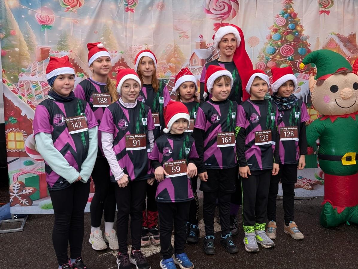 Zawodnicy SPL Jaworzno podczas biegu mikołajkowego w Katowicach