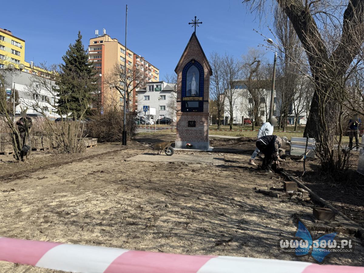 Modernizacja skweru przed kapliczką gietrzwałdzką w Jaworznie - inwestycja trwa