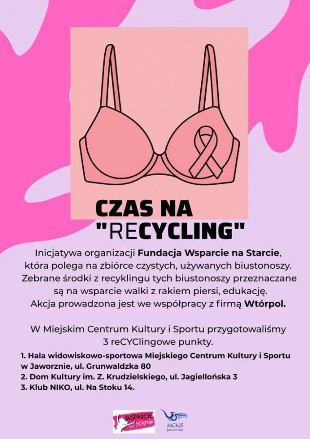 Inicjatywa społeczna ''Dotykam=Wygrywam” ma na celu edukację na temat profilaktyki raka piersi i promocję recyklingu tekstyliów. Mieszkanki Jaworzna mogą oddać nieużywane biustonosze w trzech lokalizacjach. Zbiórka trwa do końca października. Zebrane staniki zostaną poddane recyklingowi, a dochód z akcji trafi na wsparcie dwóch organizacji działających na rzecz kobiet dotkniętych chorobą nowotworową. Zbiórką w Jaworznie zajmują się Kinga Jończyk i Agata Woszczyna. Więcej informacji pod numerem 32 617 75 38.