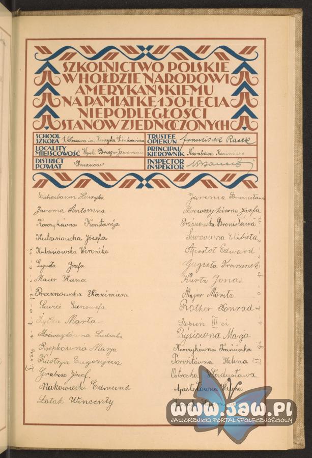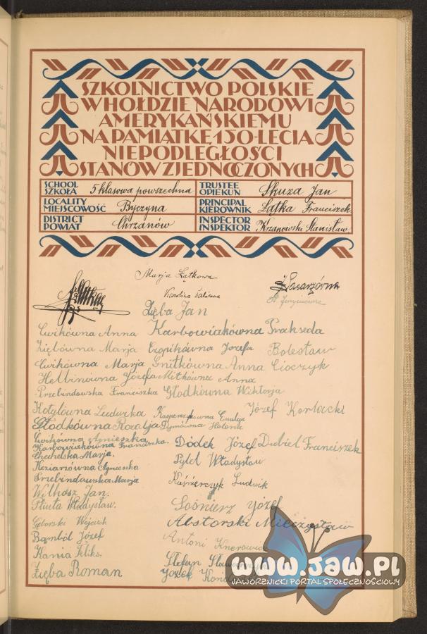 Podpisy uczniów ze szkoły na terenie Jaworzno Wysoki Brzeg